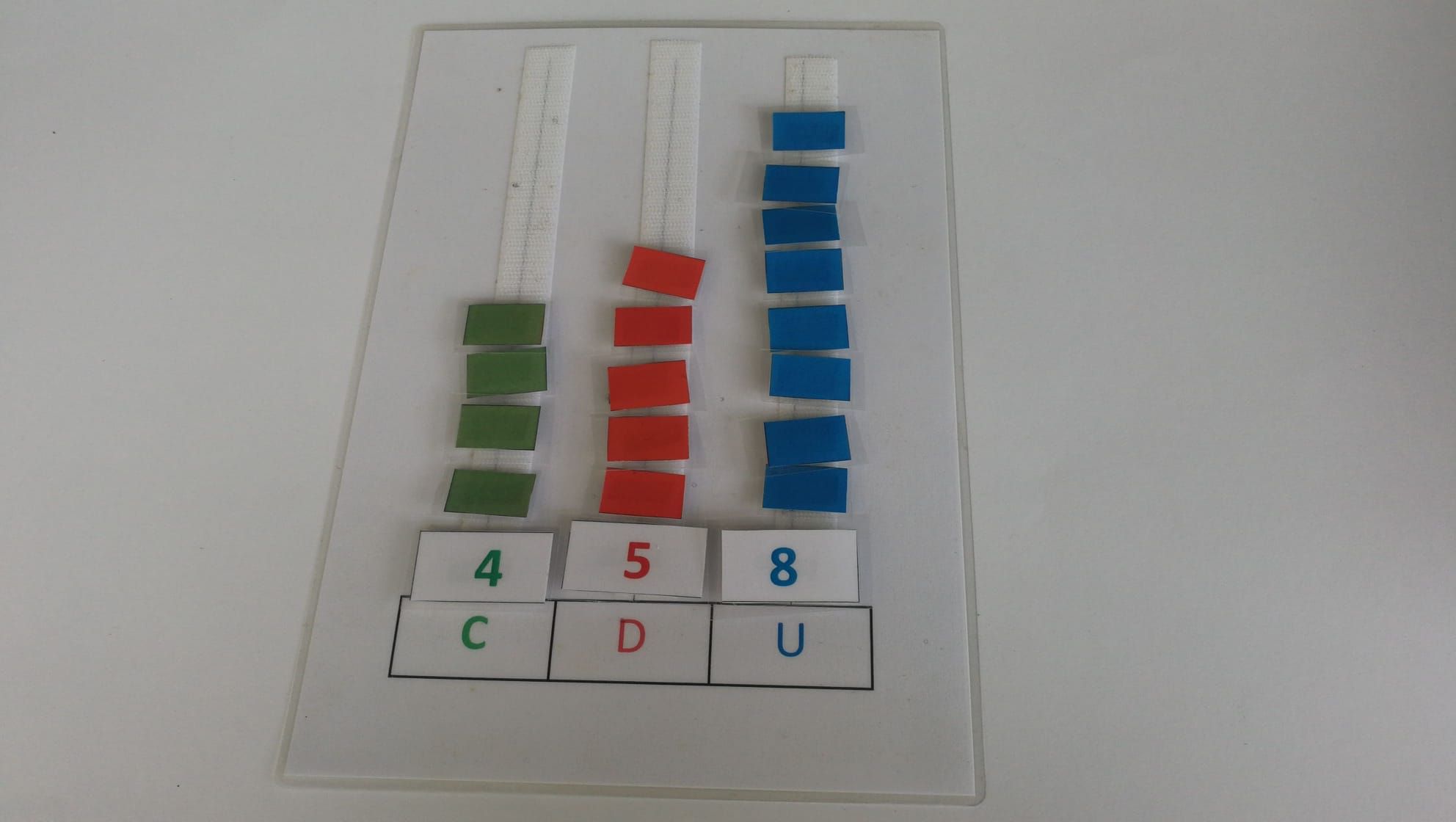 Traballamos co material da imaxe os números coas centenas, decenas e unidades. Ademais aproveitamos para facer ditados de números.