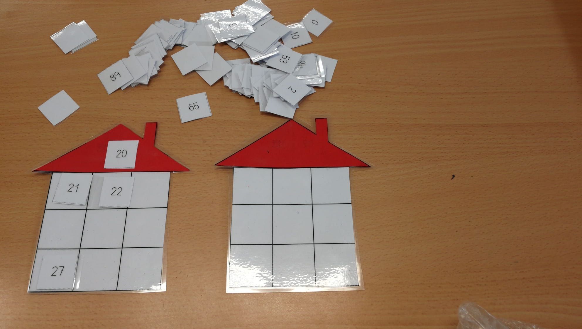 Para traballar os números, decena e unidade empregamos o bingo, as casas das familias dos números, os comenúmeros e as casiñas das decenas e unidades: