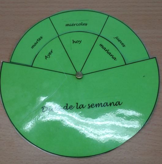 E para traballar a competencia matemática e lingüística usaremos a roda dos días da semana. Traballamos presente, pasado e futuro a través dos días.