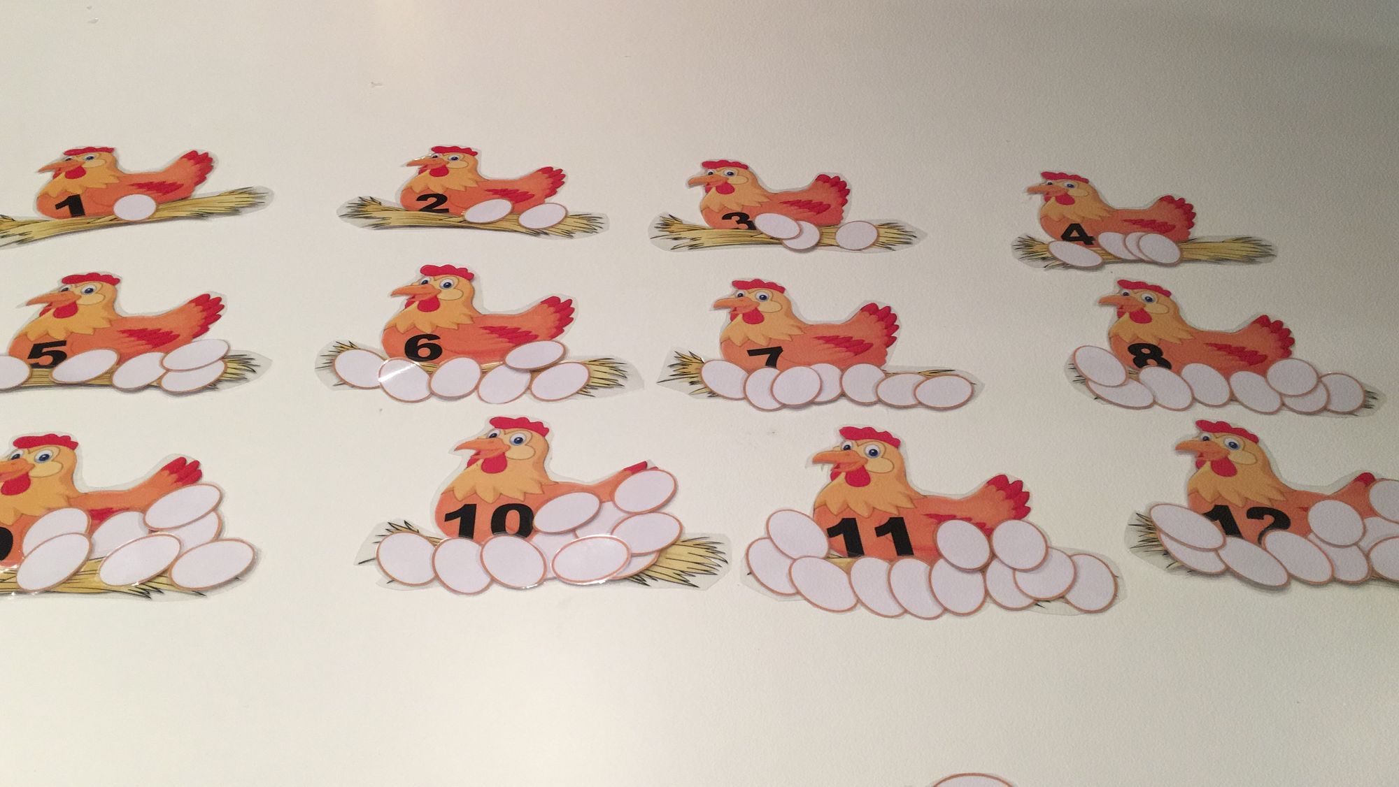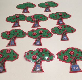 1.Traballamos o conteo, tamén as cores.".2.Unimos cada mazá coa metade correspondente ao número que se indica. 3. Contamos a froita que hai en cada árbore e colocamos en cada tronco o número que corresponda; ordeamos de maior a menor as árbores segundo a cantidade de froita e viceversa.4. Unimos cada nube coa súa metade correspondente e traballamos as cantidades, as cores, a lateralidade....5. Unimos cada ovo coa súa metade, traballamos así os números. e a posición arriba/ abaixo.
