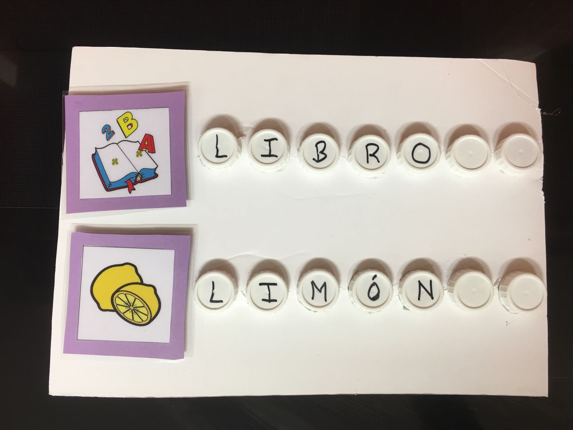 1.Ordenar o nombre coas letras en maiúsculas ( o botón indica a colocación da letra)2.Co dado de vogais xogamos a adiviñar por que vogal empeza cada imaxe (segundo a vogal collemos o debuxo).3.Vogais a fuga (ensinamos a leer apoiándonos na imaxe retirando nun principio só as vogais,e logo iremos sacando as consoantes segundo vaian aprendendo). 4. Lectura de imaxes, e asociación das mesmas segundo a letra pola que empecen. 5, Facemos descriminación visual entre grande pequeno e mediano. 6. Asociamos imaxen a cada palabra e separamola en silabas. 7. Construimos os puzzles coas fotos da xente máis cercana ao alumno, aprendemos o seu nome e descompoñemolo en sílabas. 8. Lemos con Bubela, transcribimos as maiúsculas os textos. 8. Miramos a imaxe e escollemos as letras e formas a palabra.