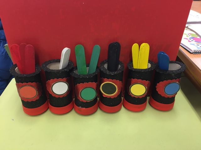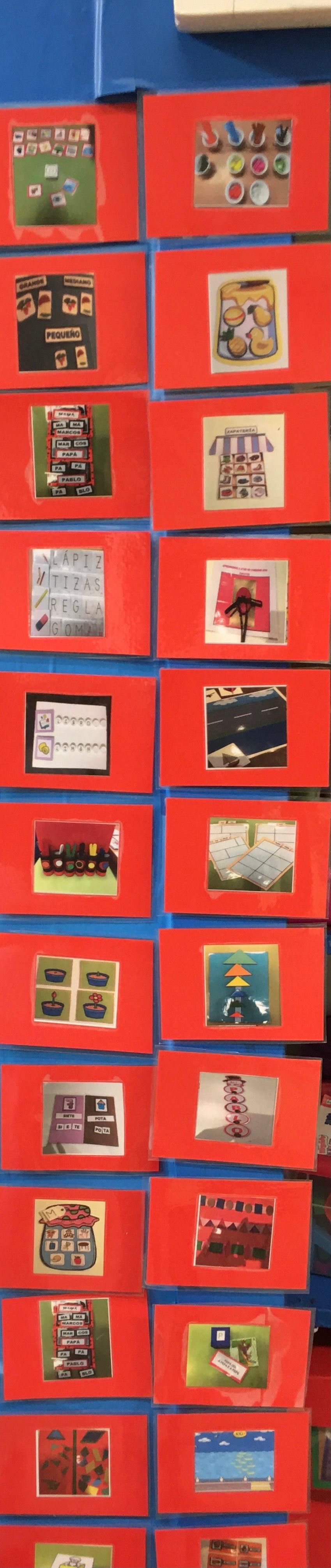A clase ten colocados os pictos que se corresponden con cada unha das caixas Teacch, dentro de cada unha están as instruccións para actividade que hai que facer. Na mesa do alumno/alumna, poranse en orden os pictos das tarefas que ten que realizar ese día.